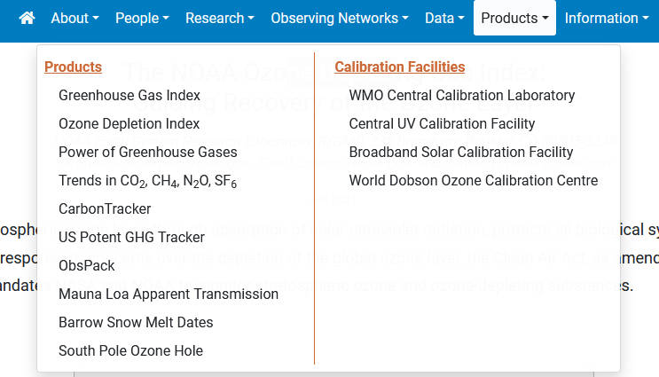 除了世界臭氧和紫外线辐射数据中心发布的数据外,Noaa的GML也发布有臭氧与水蒸气数据。